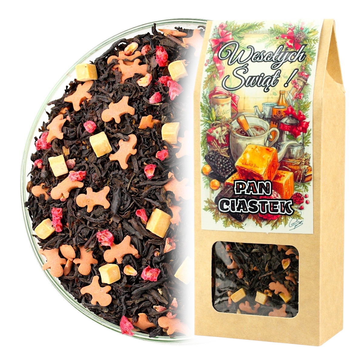 Nasza herbata "Pan Ciastek" to idealny pomysł na nietuzinkowy prezent, który zachwyci smakiem i magicznym klimatem świąt. Spraw, by te Święta były naprawdę wyjątkowe!