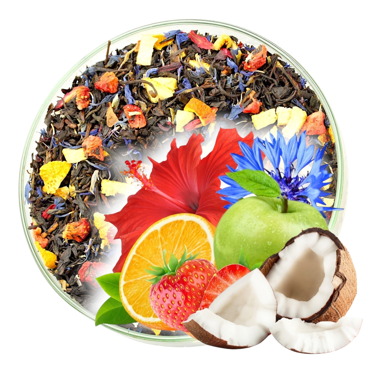 Czarna herbata cejlońska której smak został wzbogacony takimi dodatkami jak rodzynki, wiśnie i hibiskus.