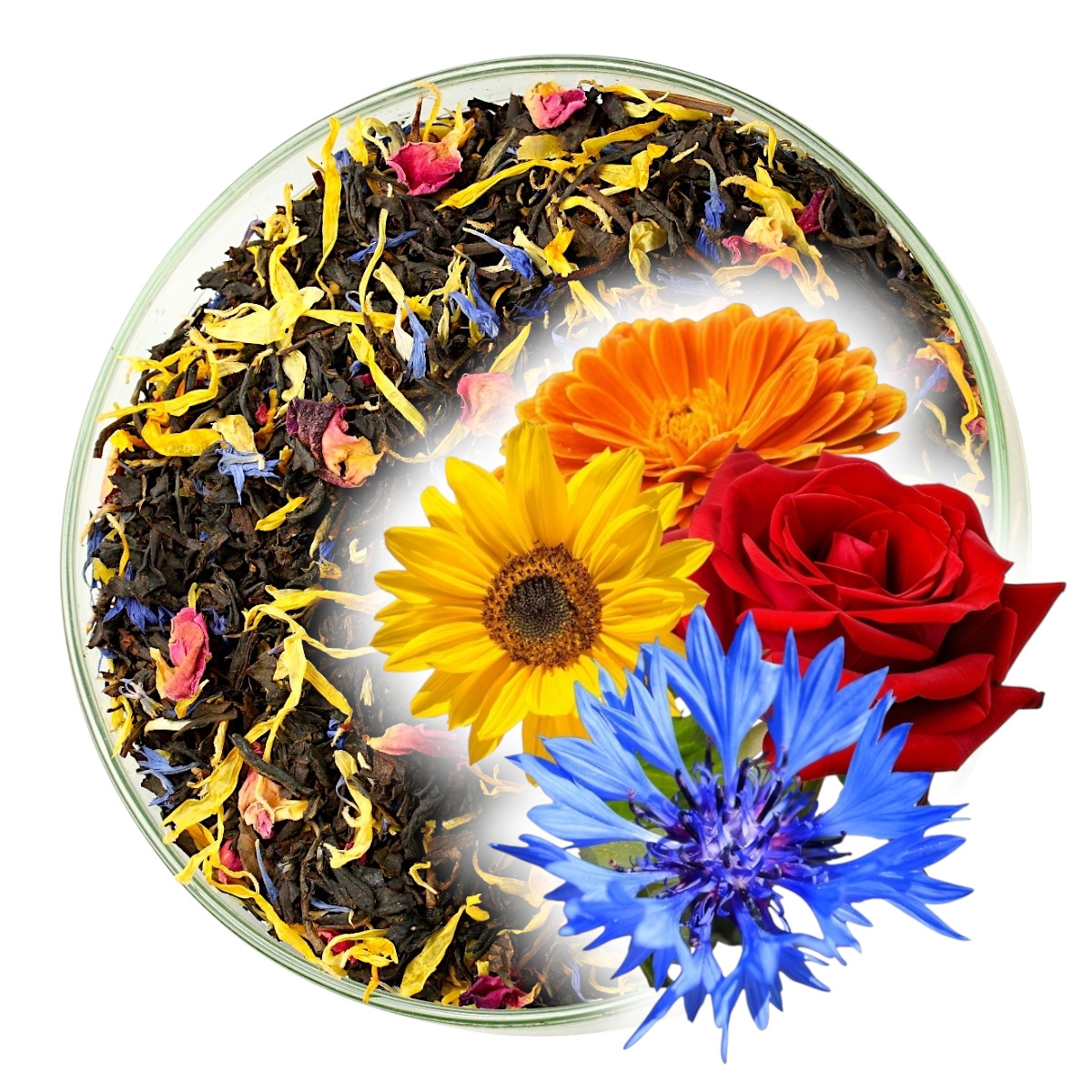 Wysokogatunkowa herbata czarna urozmaicona dodatkami kwiatowymi.