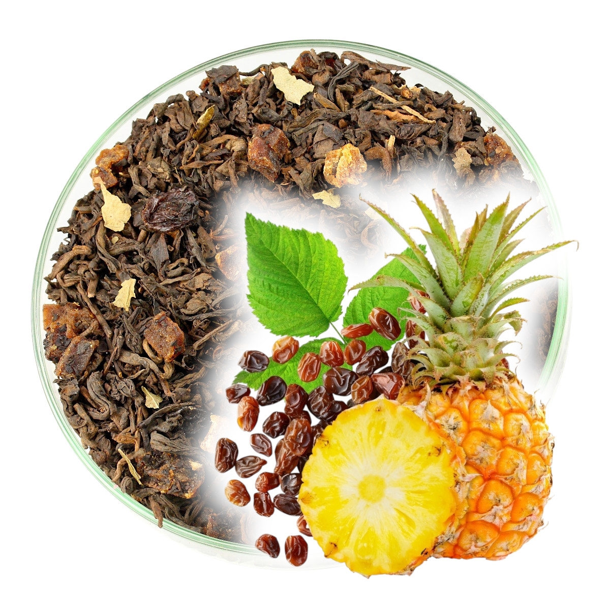 Pu-erh Figa Indyjska czerwona herbata wspomaga diety wyszczuplające. Połączenie ananasa, rodzynek, figi z dodatkiem leśnych owoców idealnie przywraca równowagę w organizmie.