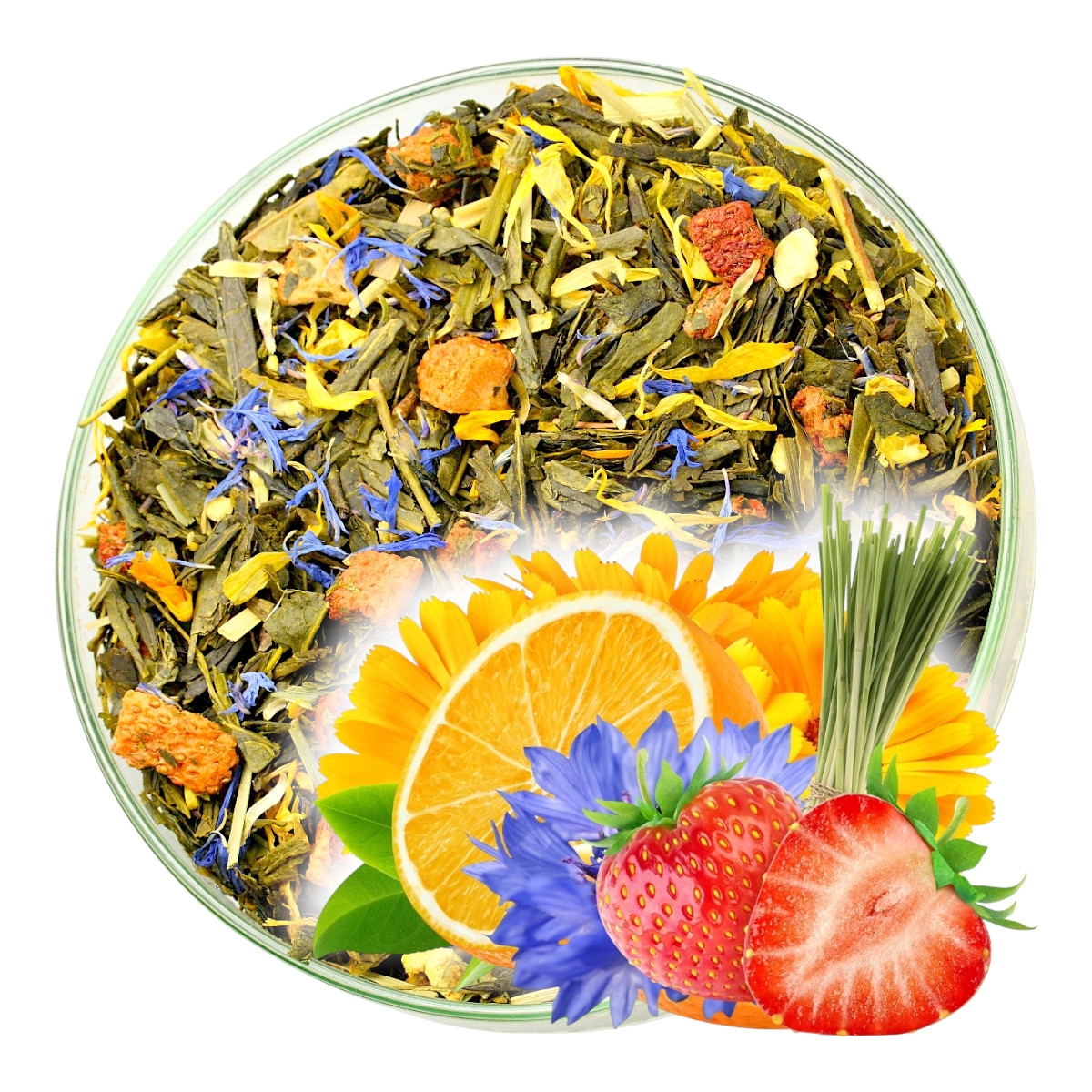To wyjątkowe połączenie zielonej herbaty z kandyzowaną pomarańczą, soczystą skórką pomarańczy i orzeźwiającą trawą cytrynową.
