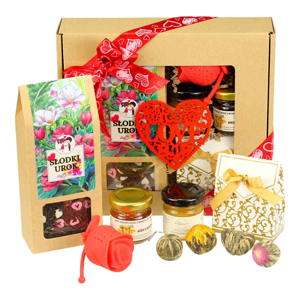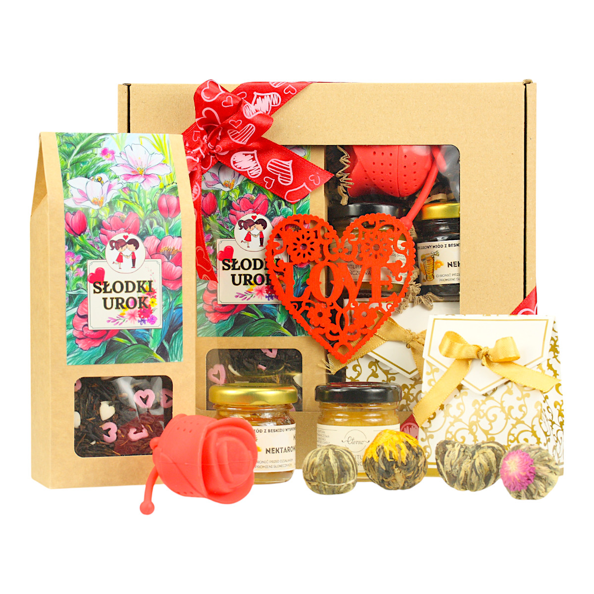 Walentynkowy zestaw herbaciany to nie tylko bogactwo smaków, ale i estetyczna uczta dla oka. Ta kompozycja została zaprojektowana z myślą o tym wyjątkowym dniu. Jej elegancja i subtelność idealnie oddają ducha Walentynek, czyniąc ten prezent prawdziwie niezapomnianym. Zachwyć swoją drugą połówkę, podkreślając wyjątkowość Waszej relacji.