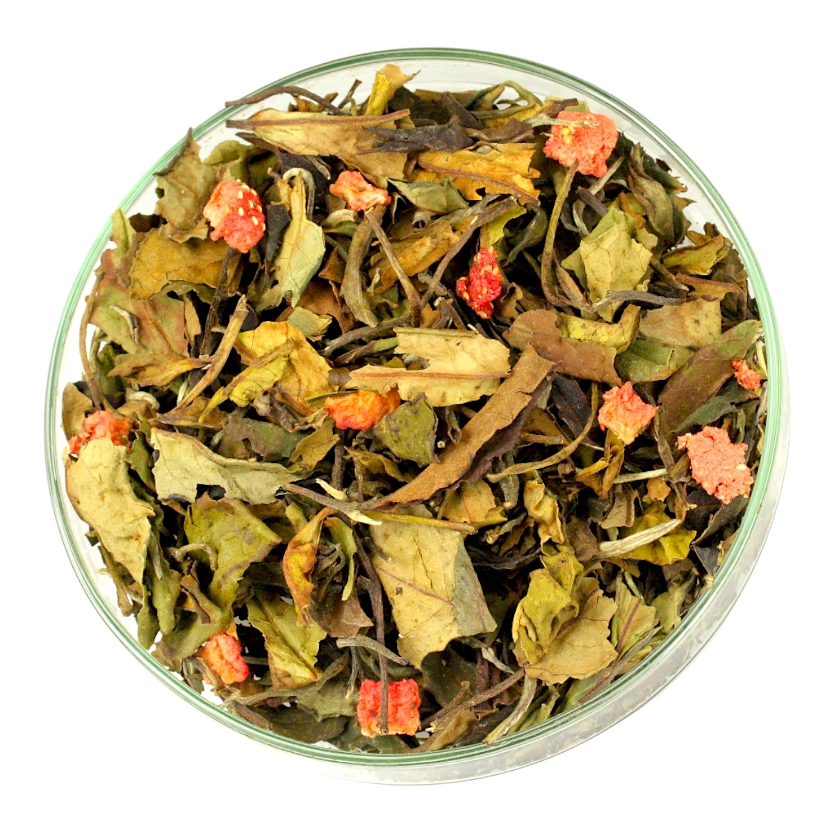 Składniki: Biała Herbata Pai Mu Tan, Liofilizowane Truskawki, Aromat Truskawek i Szampana.