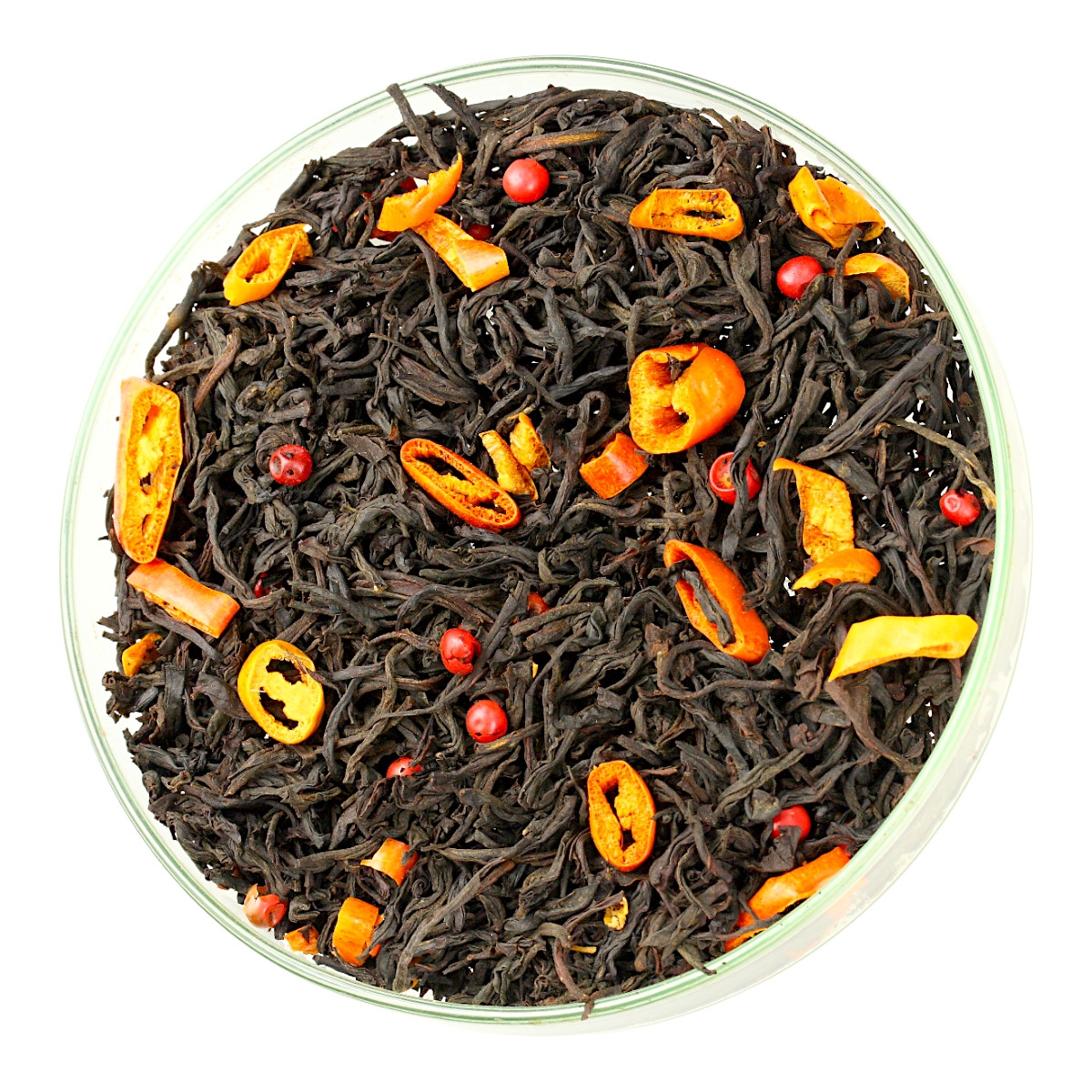 Składniki: Czarna Herbata, Plasterki Papryczek Chili, Ziarenka Pieprzu Czerwonego, Marcepanowo Cynamonowy Aromat.