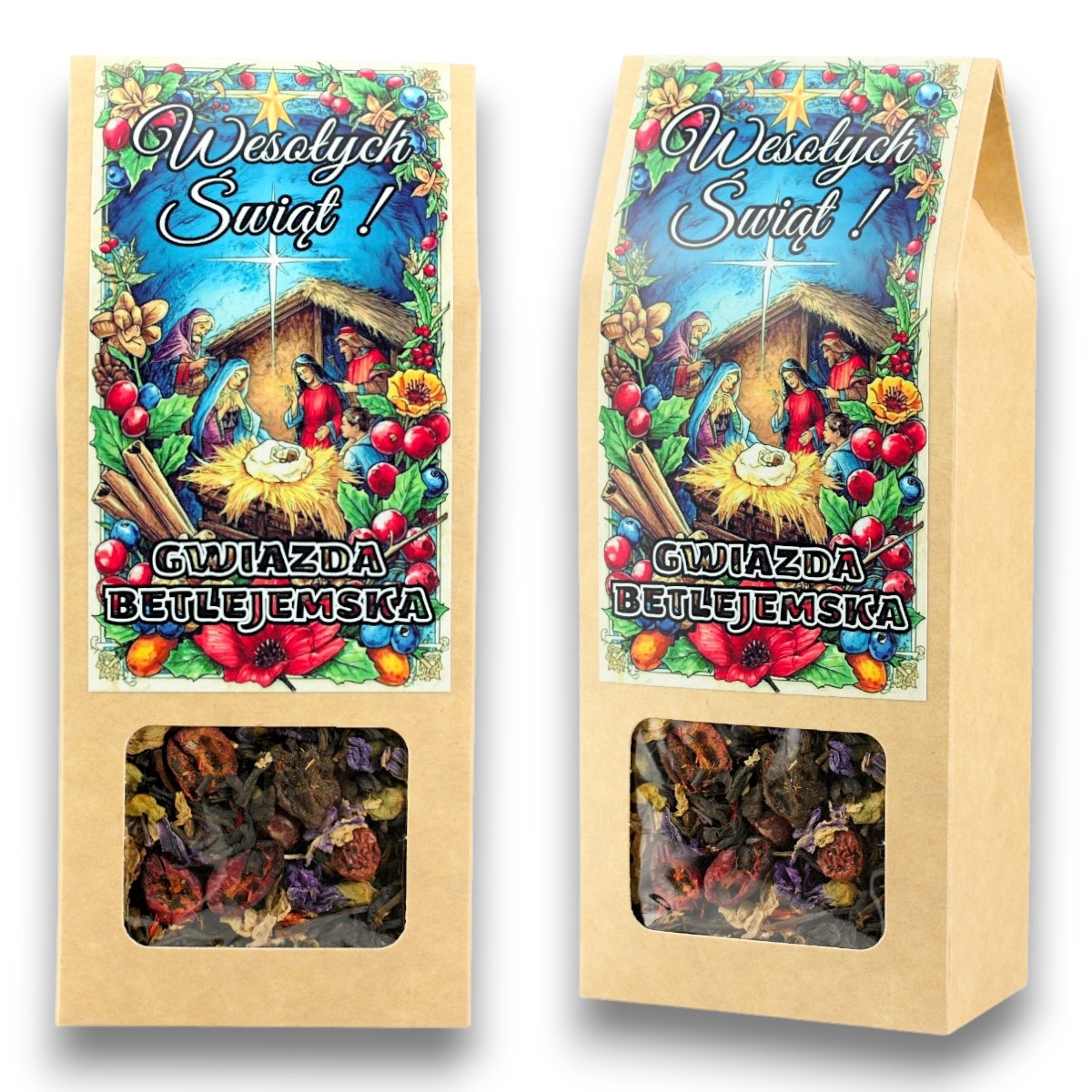 Wprowadź magię Świąt Bożego Narodzenia do swojego domu dzięki wyjątkowej herbacie "Gwiazda Betlejemska". Ten aromatyczny napój łączy w sobie bogactwo czarnej herbaty z delikatnymi nutami cynamonu i imbiru kandyzowanego, tworząc harmonijną kompozycję smaków, która otuli Cię ciepłem i radością. Dodatek rodzynków, czerwonej porzeczki, ślazu, żurawiny liofilizowanej oraz czerwonego bławatka sprawia, że każdy łyk tej herbaty to prawdziwa uczta dla zmysłów. Subtelny aromat przeniesie Cię w magiczny świat świątecznych wspomnień i radości!