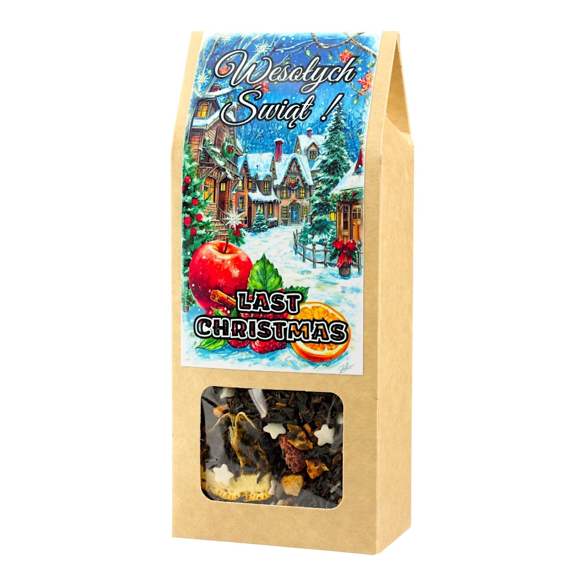 Zanurz się w magicznej atmosferze Świąt Bożego Narodzenia z naszą wyjątkową, świąteczną herbatą "Last Christmas". To nie tylko napój, ale prawdziwa podróż przez zimowe smaki i aromaty, które wypełnią Twój dom ciepłem i radością. Delikatna czarna herbata została wzbogacona o dekoracje cukrowe, które niczym śnieg przysłaniają krajobraz, dodając uroku każdej filiżance. Cynamon wprowadza korzenną nutę, idealną na zimowe wieczory, a jabłko i liofilizowane maliny i pomarańcze przynoszą słodką, owocową świeżość. Aromat dopełnia kompozycję, tworząc iście świąteczną mieszankę.