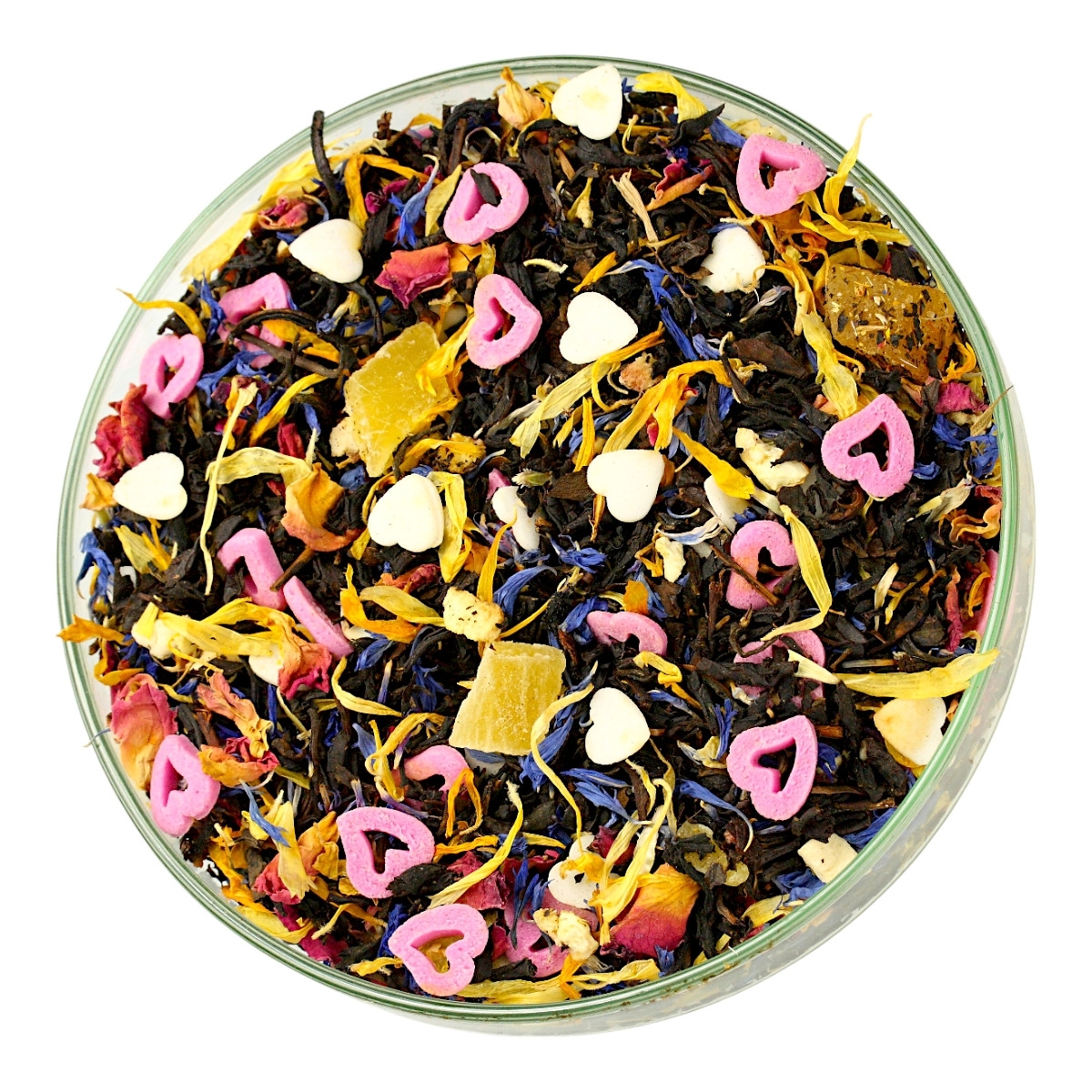 Odkryj magię herbaty Love Tea i zanurz się w miłosnej symfonii smaków. Ta luksusowa mieszanka czarnej herbaty, wzbogacona dekoracjami cukrowymi, kandyzowanym mango, bławatkiem, nagietkiem, płatkami róży oraz liofilizowanym rabarbarem, oczaruje Twoje zmysły. Delikatny aromat uniesie Cię do świata pełnego harmonii i spokoju. Każda filiżanka Love Tea to chwila relaksu, która koi duszę i ciało. Pozwól sobie na tę wyjątkową przyjemność i odkryj, jak smakuje prawdziwa miłość.