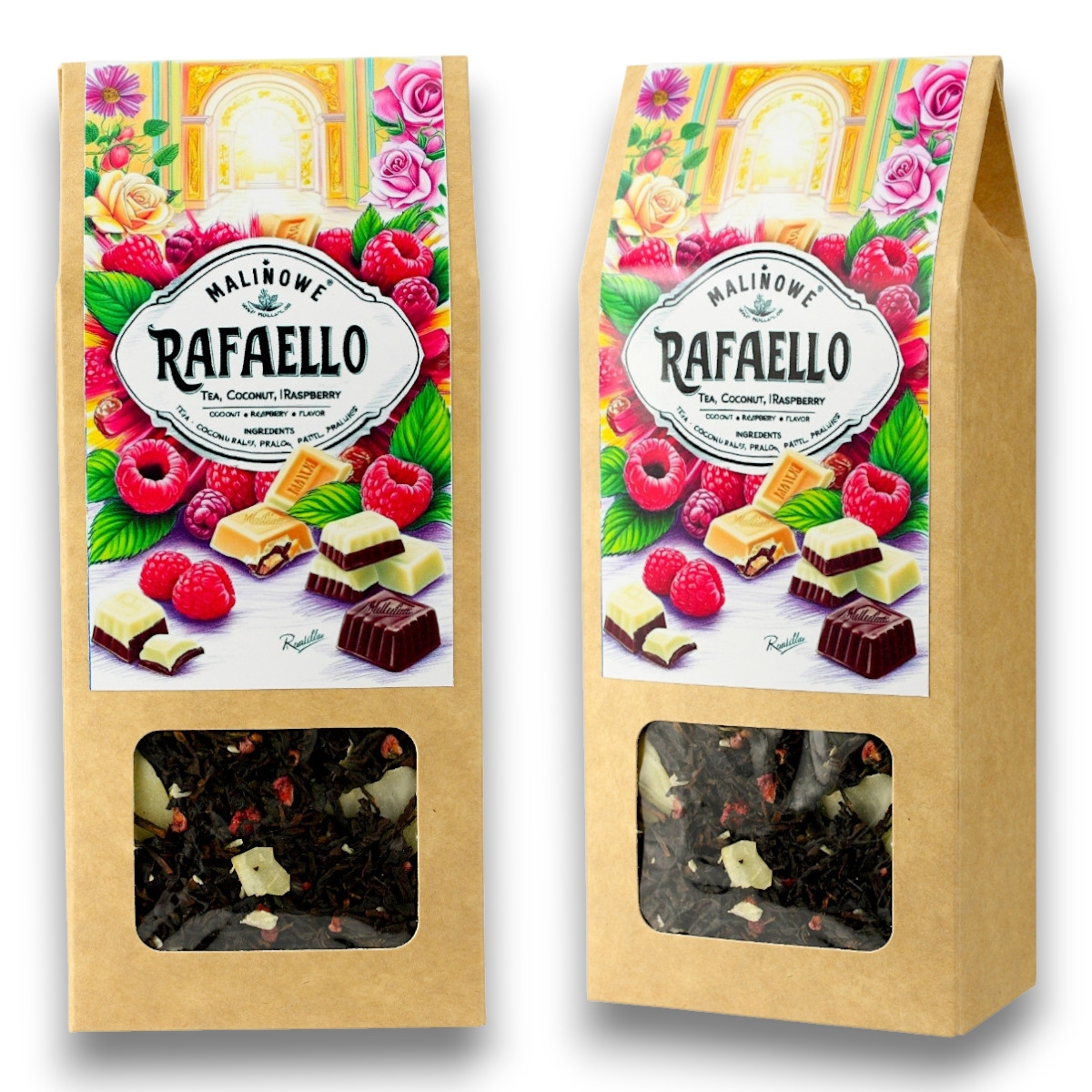 Składniki: Czarna herbata Yunnan, kokos, malina liofilizowana, aromat.