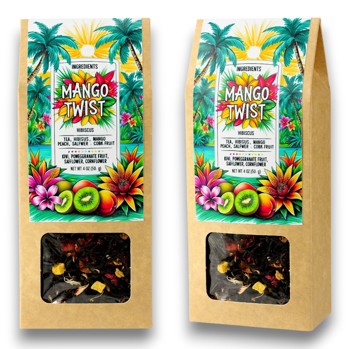 Składniki: Czarna Herbata, hibiskus, mango (4,2%) aromaty, kiwi, brzoskwinia, granat owoc, krokosz, bławatek.