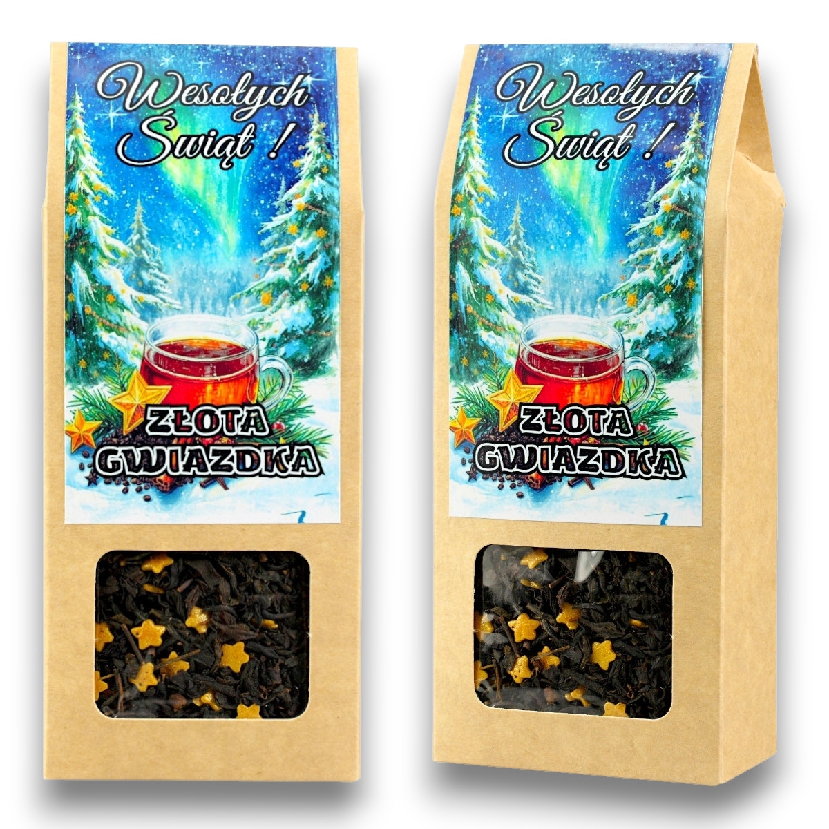 Zanurz się w magicznej atmosferze Świąt Bożego Narodzenia z naszą wyjątkową herbatą "Złota Gwiazdka". To nie tylko napój, ale prawdziwy rytuał, który wprowadzi Cię w świąteczny nastrój. Kompozycja czarnej herbaty wzbogacona o dekoracje cukrowe, aromatyczny cynamon i korzenne goździki tworzy harmonijną symfonię smaków. Dodatek aromatu nadaje jej niepowtarzalny charakter, który rozgrzeje każde serce w zimowy wieczór.