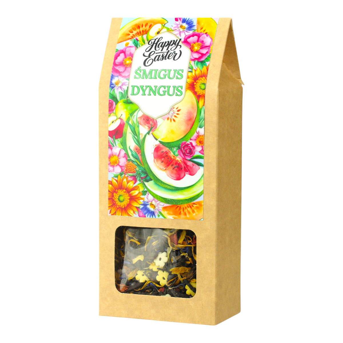 Nasza herbata Śmigus Dyngus to idealny wybór na wielkanocne spotkania. Jej estetyczne i eleganckie opakowanie przyciąga wzrok, odzwierciedlając radosny charakter świąt. Kolorowe akcenty nawiązują do tradycyjnych wielkanocnych dekoracji, dzięki czemu jest to nie tylko doskonały napój, ale również piękna ozdoba świątecznego stołu. Wybierając naszą herbatę, podkreślasz wagę chwil spędzanych z bliskimi.