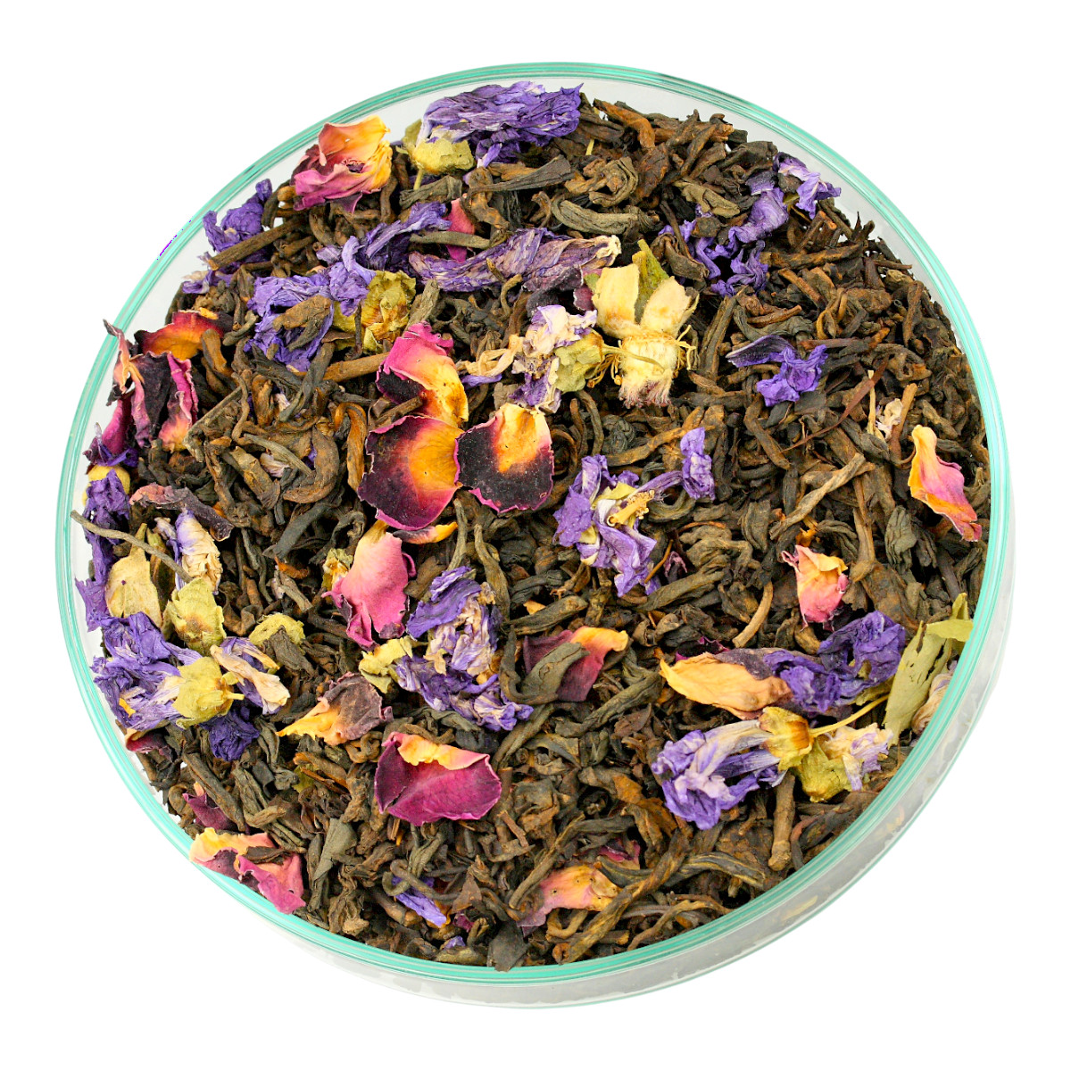 Składniki: Herbata Pu-erh, Płatki kwiatowe (ślaz i róża), Aromat.