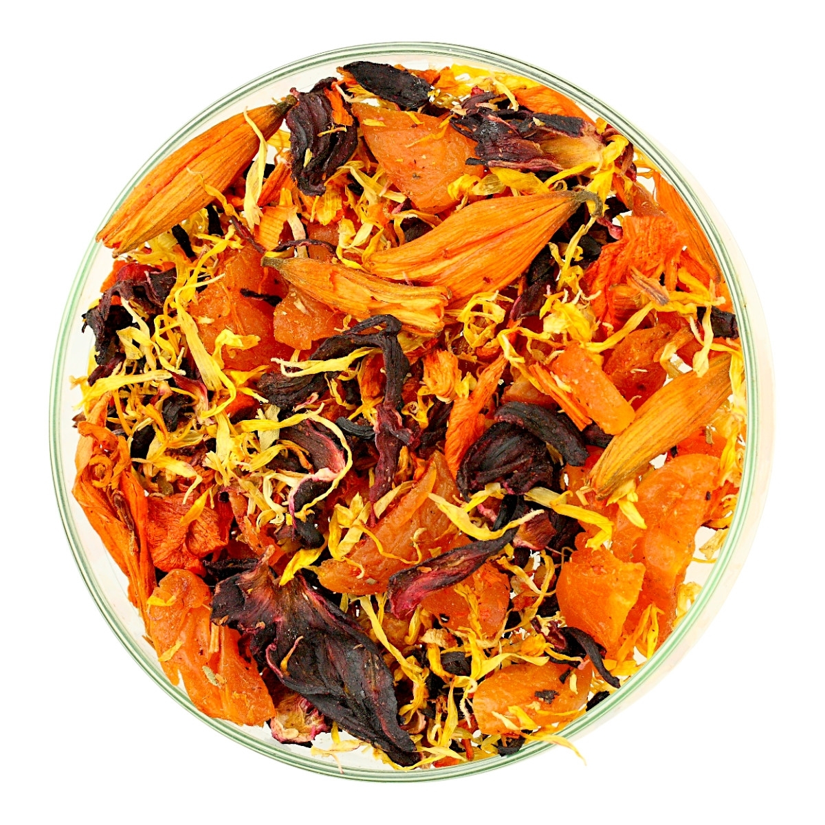 Składniki: Morela suszona (morela, SO2), papaja, hibiskus, płatki lilii, płatki nagietka, aromat.
