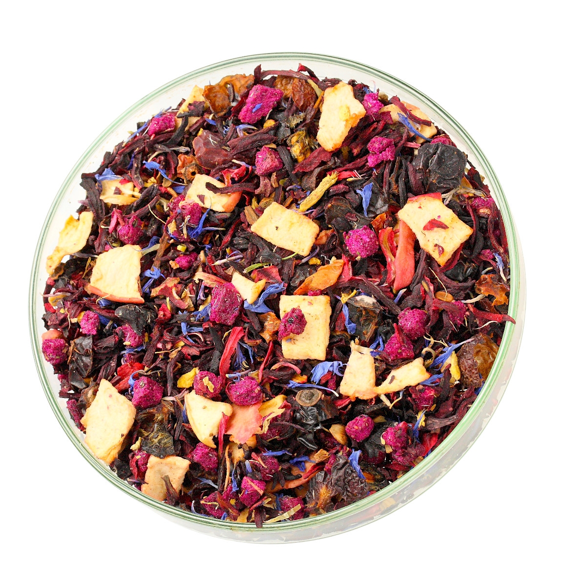 Składniki: Hibiskus, skórka róży, jabłko, cynamon, imbir, smoczy owoc liofilizat, bławatek, aromat.