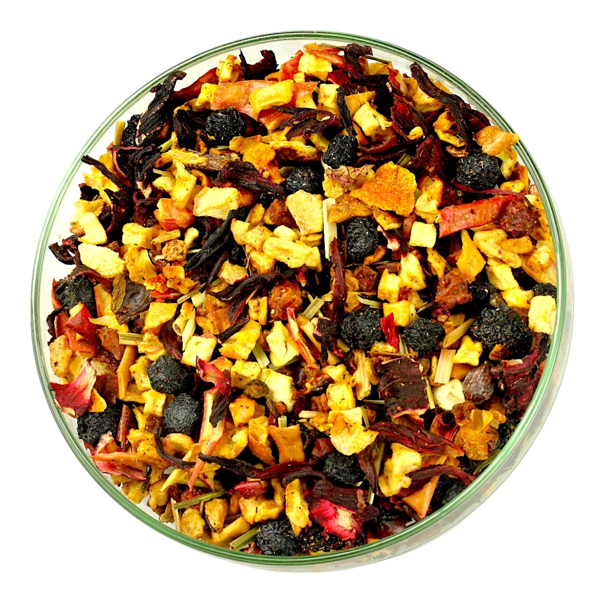 Składniki: Owoc porzeczki, Jabłka, Aronia, Suszona skórka pomarańczy, Kwiat hibiskusa, Trawa cytrynowa, aromat.