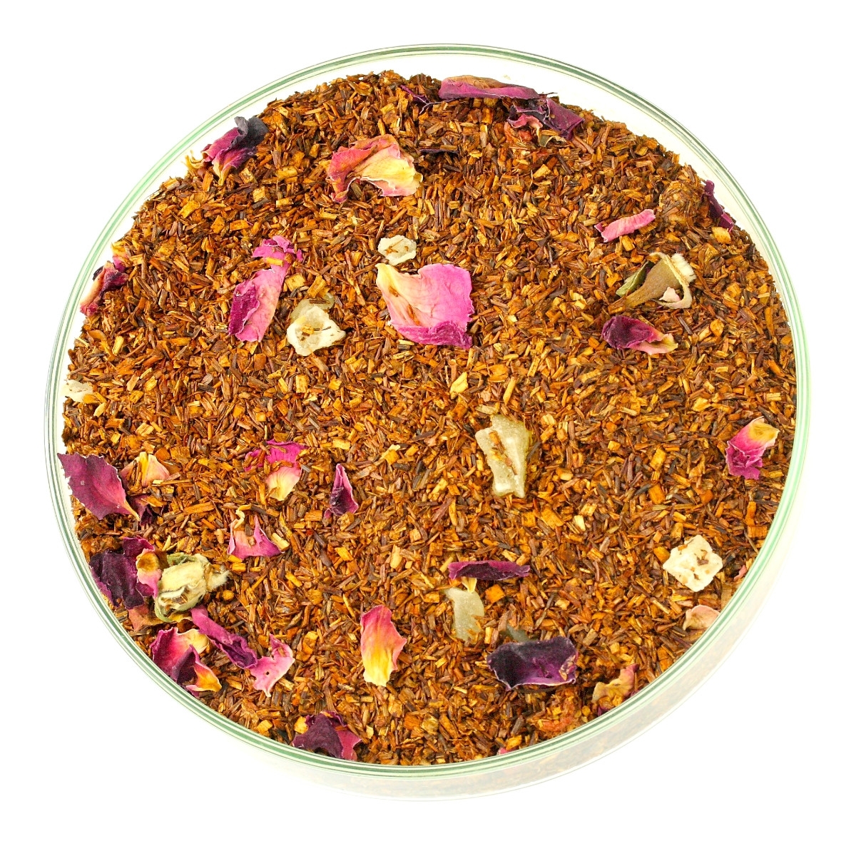 Składniki: Rooibos, ananas owoc, truskawka kandyzowana, płatki róży, aromat.