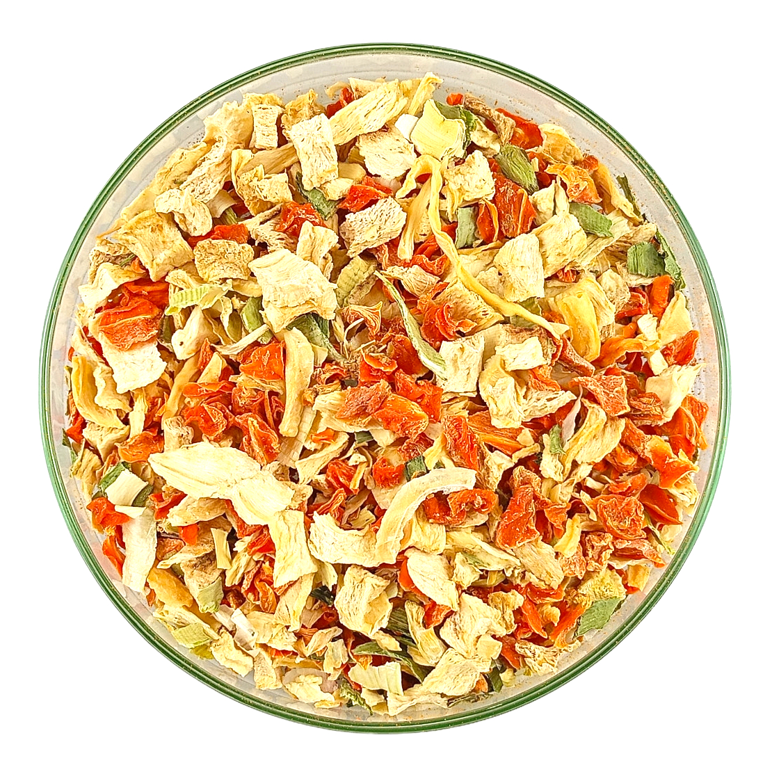Aromatyczna kompozycja suszonych warzyw w grubszych kawałkach.