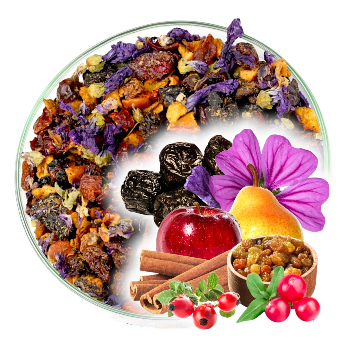 Herbata owocowa o intensywnym aromacie, łącząca słodycz owoców z nutą tradycji.