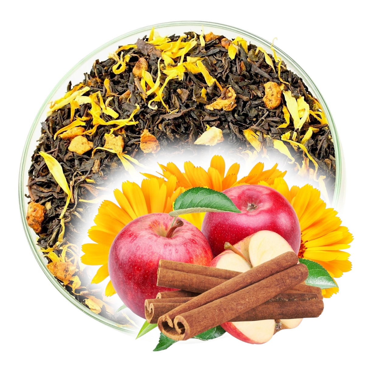 Składniki: Czarna herbata, Suszone jabłka (3%), Cynamon (4%), Aromat jabłkowo-cynamonowy.