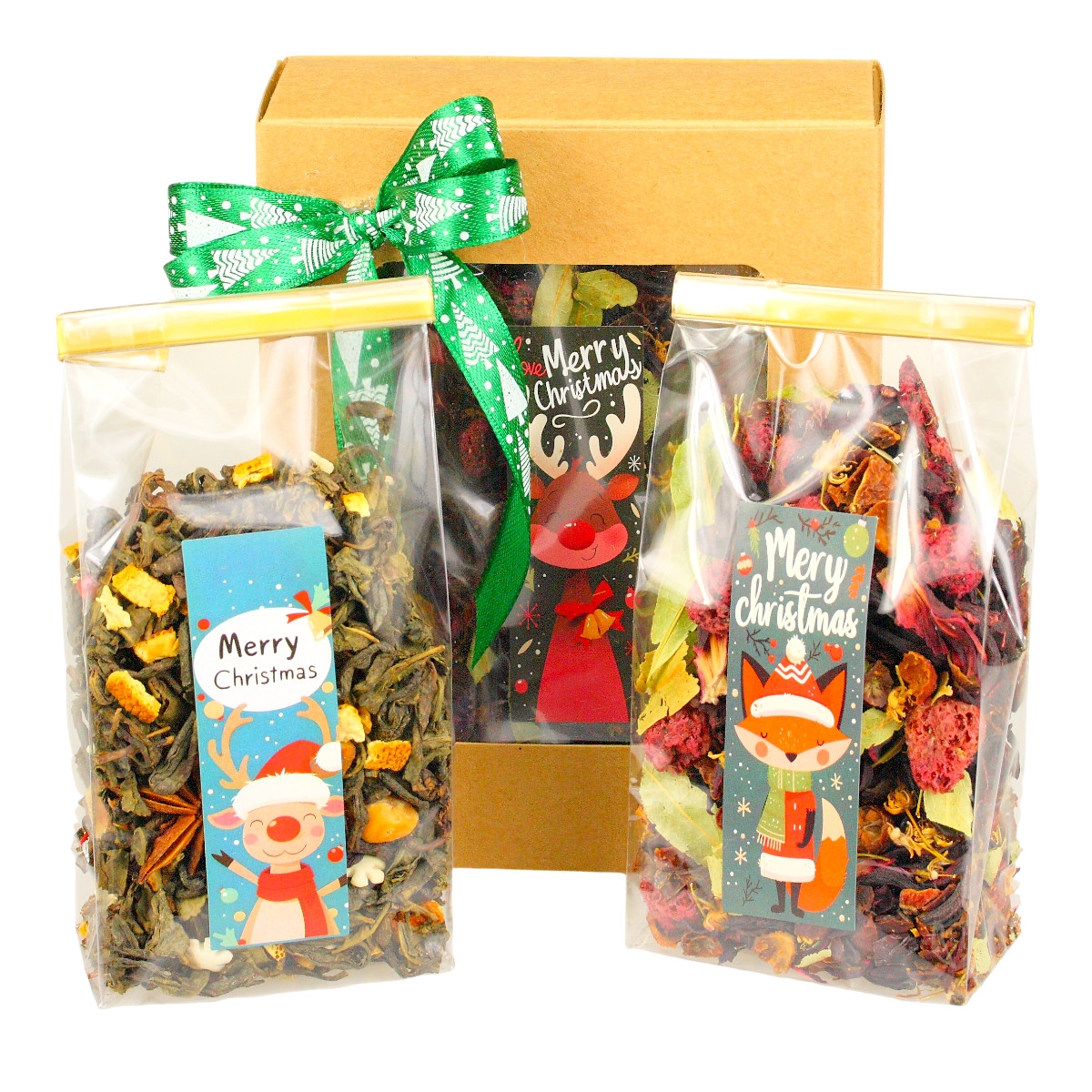 Zapraszamy do odkrycia wyjątkowego zestawu herbat na święta, który z pewnością oczaruje każdego miłośnika herbacianych chwil. W eleganckim beżowym kartoniku znajdziesz dwie herbaty: zieloną „Dziadek Do Orzechów” oraz owocową „Lipowo Malinową”. Herbaty zostały starannie zapakowane w transparentne torebki, ozdobione dekoracyjnymi naklejkami o świątecznej tematyce. Całość dopełnia urocza kokarda i naklejka świąteczna, które dodają zestawowi magicznego uroku.