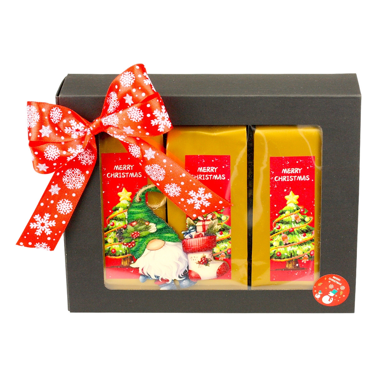 Nasze estetyczne i eleganckie, a zarazem skromne opakowanie, z unikatową etykietą, to doskonały wybór na prezent. Każdy element zestawu jest w 100% wykonany ręcznie, co czyni go unikalnym i wyjątkowym. Podaruj bliskim chwilę relaksu i przyjemności w świątecznym klimacie.