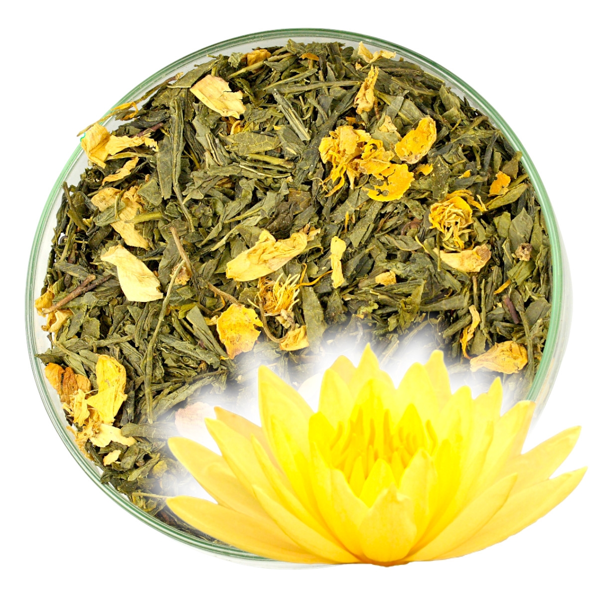 Klasyczna Sencha wzbogacona suszonymi kwiatami złotego lotosu.