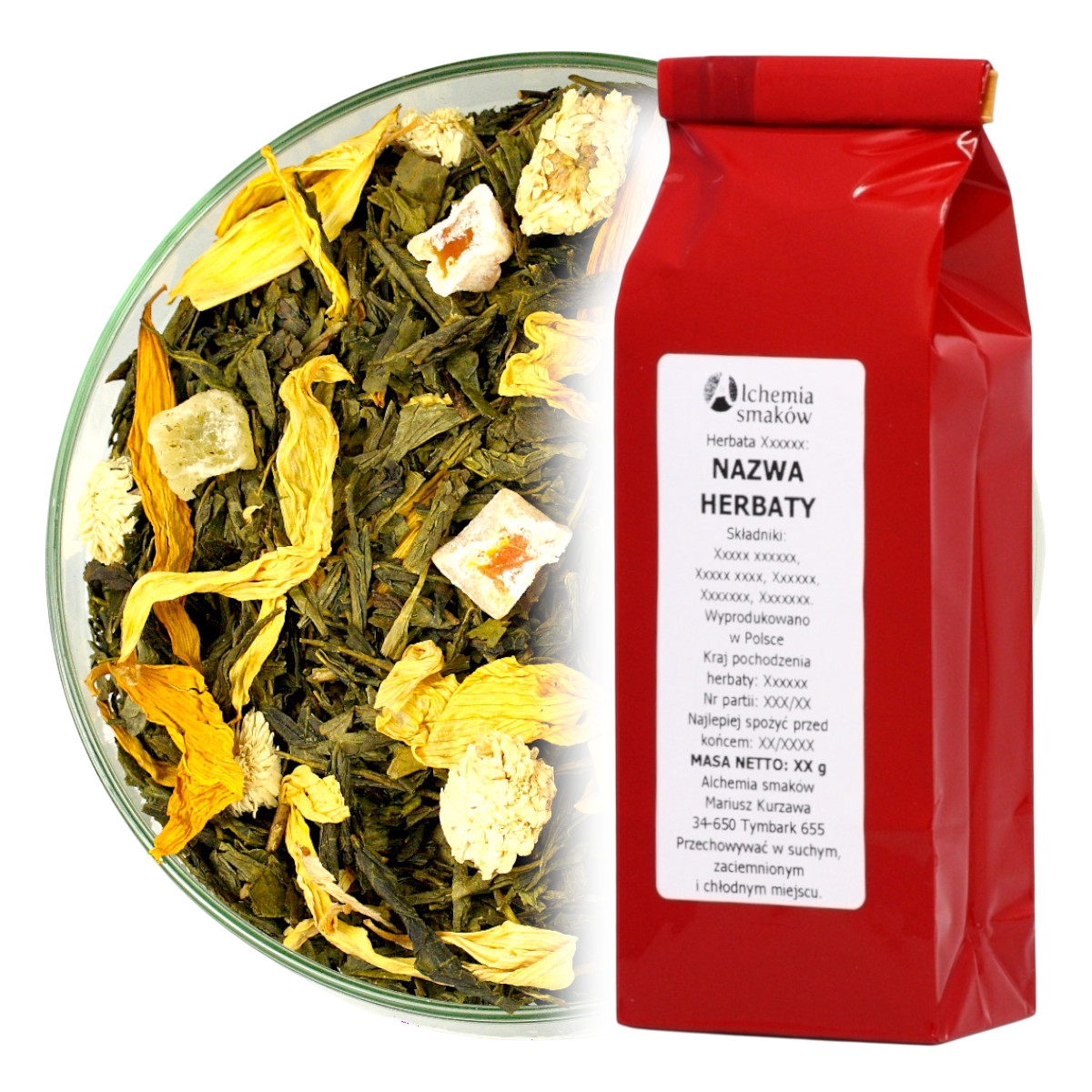 Połączenie tego co najlepsze w zielonej herbacie Sencha z aromatem miodowym, uzupełnione delikatnym smakiem owoców egzotycznych, kwiatem chabra bławatka, płatkami róży a wszystko przyprawione kwaskowatością trawy cytrynowej.