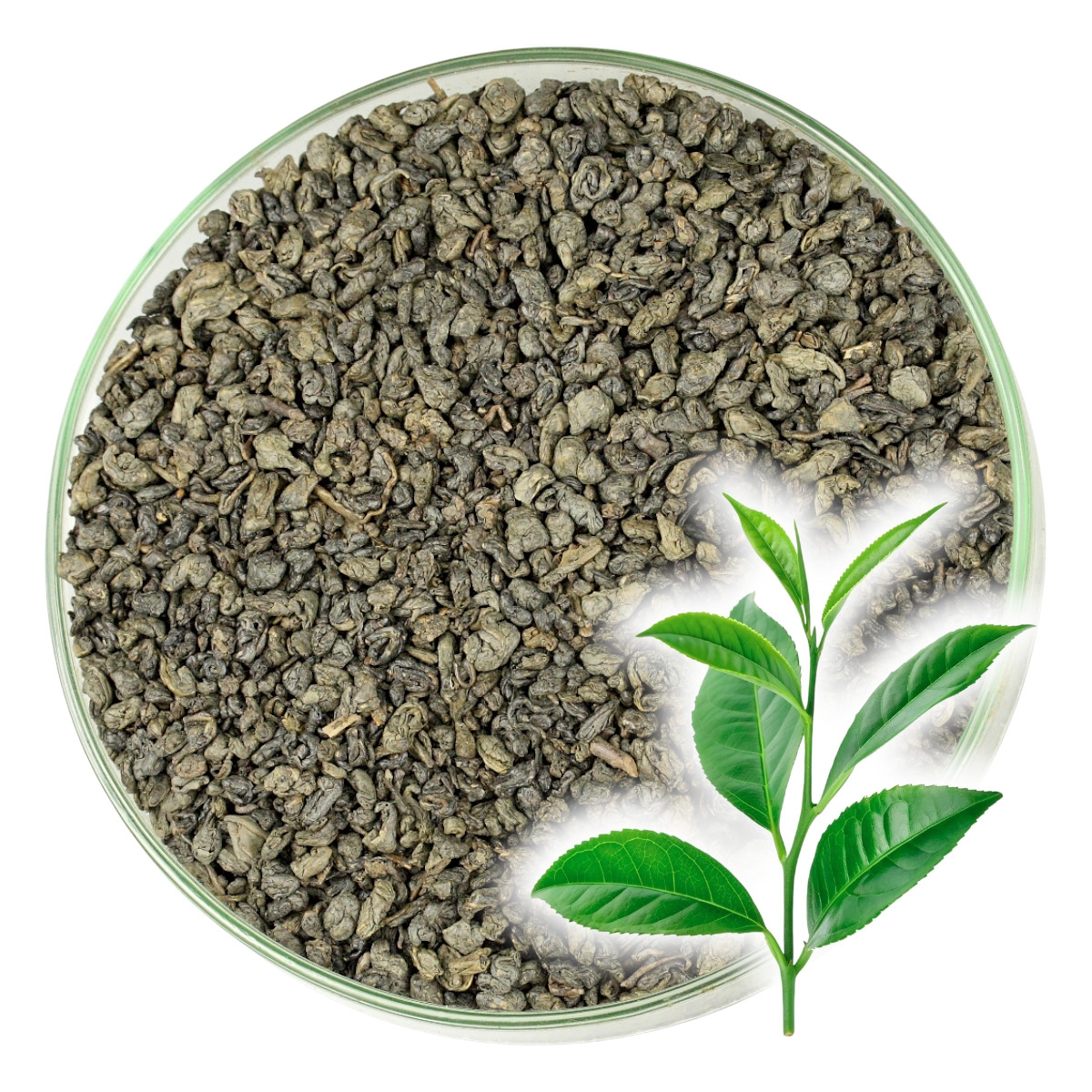 Zielona herbata wysokogatunkowa, ciasno zwinięta w małe kuleczki, przypominające swoim wyglądem proch strzelniczy.